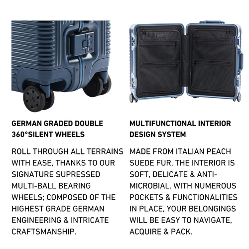 The upgraded model includes larger, more durable German Run-Silent 360-degree shock-absorbing wheels for superior maneuverability, a multi-level adjustable telescoping handle with enhanced security, and a reimagined interior layout with clever organizational components for optimal packing efficiency. With a total interior capacity of 42.5L, this is ideal for those long weekend holidays and fits in the overhead of most major airlines.